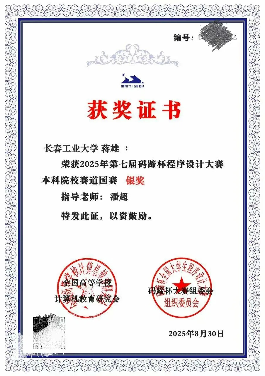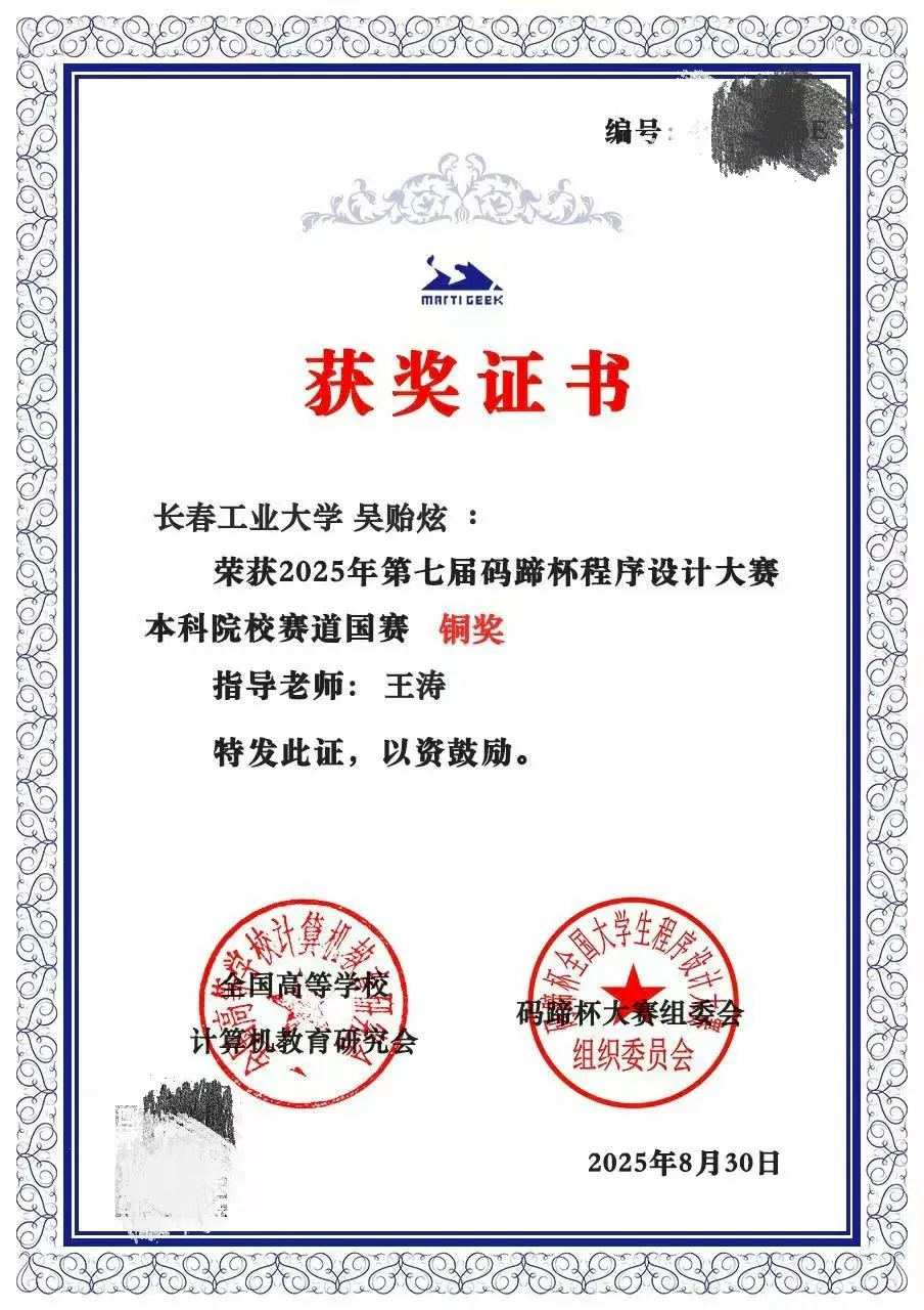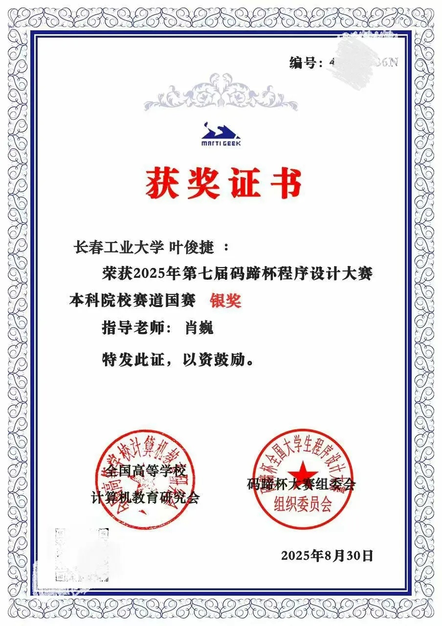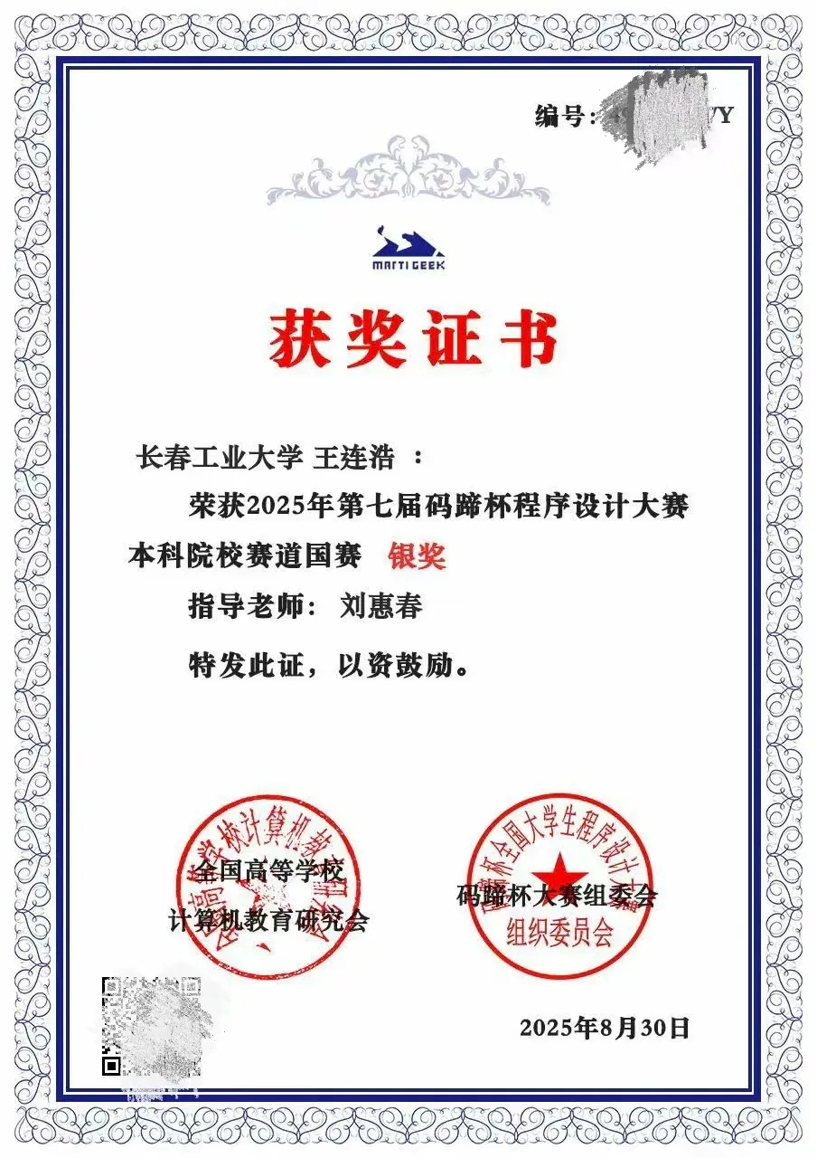 本网讯(通讯员 王连浩)近日,2025年第七届码蹄杯程序设计大赛本科院校赛道国赛结果正式公布。永利集团3044am官方3044永利集团青年学子凭借扎实的专业功底、出色的编程能力与稳定的赛场发挥,在赛事中脱颖而出,斩获3银、1铜,充分展现了学院青年在计算机程序设计领域的优秀素养与竞技实力!